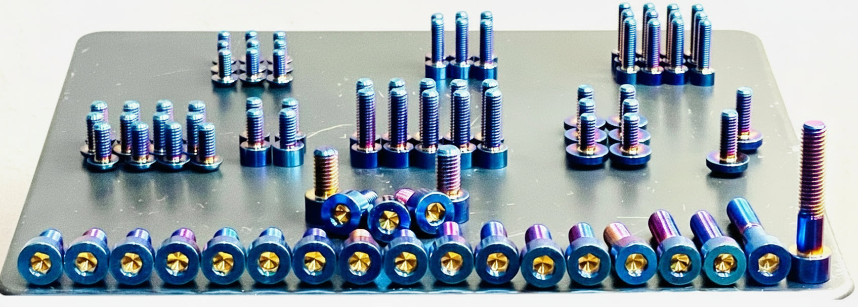 Custom titanium bolt kits for the Surron LBX and Segway X models.
